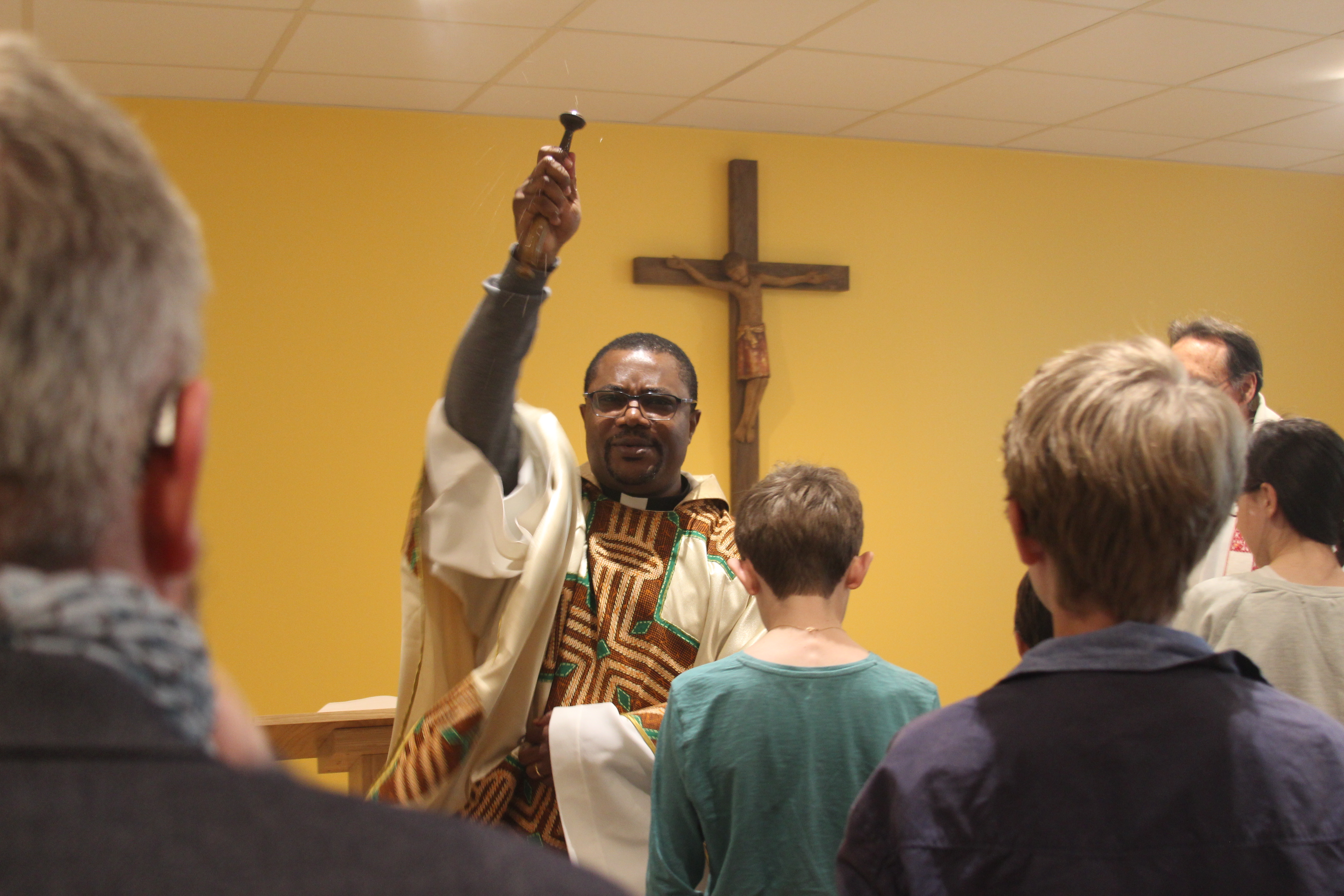 Le père Pascal Molemb, vicaire général, était accompagné par le père Paco Esplugues, prêtre référent du Collège saint-Michel et l’Abbé Marc Quatrefages, prêtre référent de l’Ecole saint Charles.