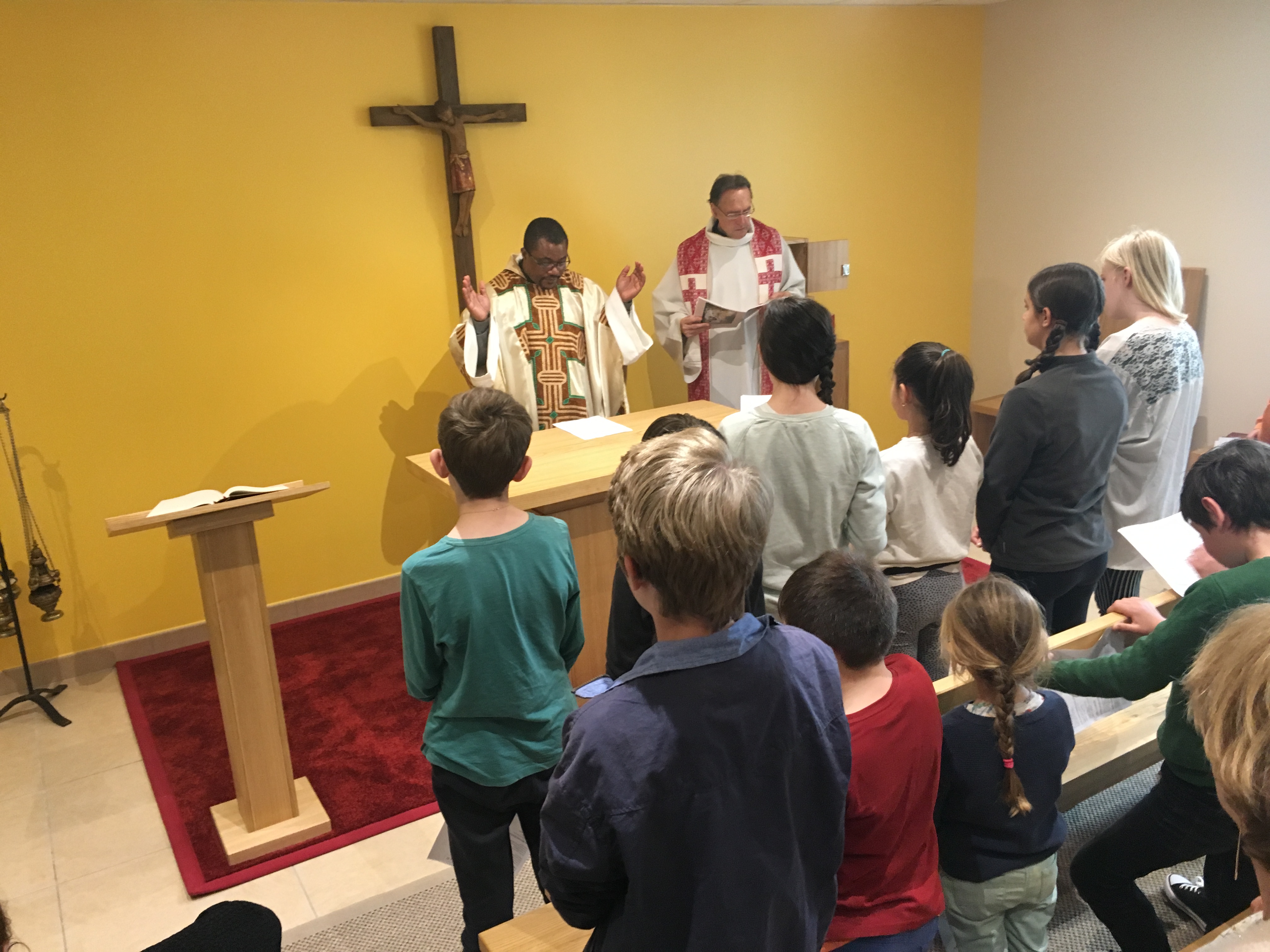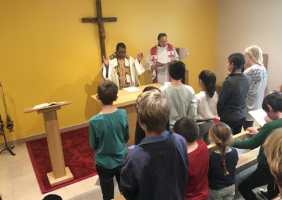 Le père Pascal nous a rappelé que Jésus ne viendrait plus nous visiter mais qu’Il était désormais définitivement chez lui. Nous avons ainsi la joie d’avoir Jésus parmi nous dans le Saint Sacrement au cœur de notre établissement. La célébration a été un grand moment de grâce. Merci à tous.