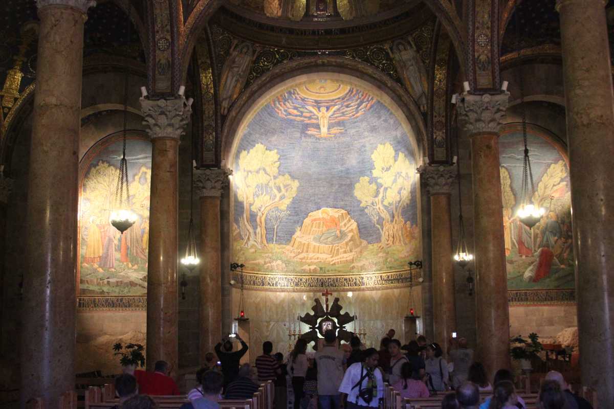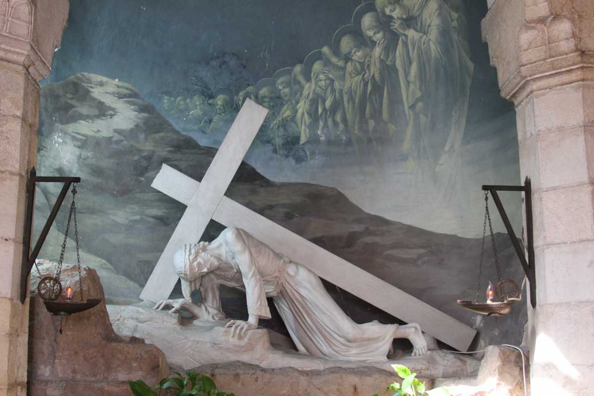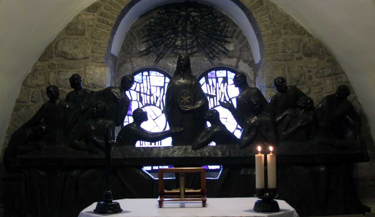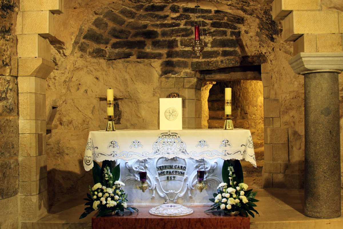 A présent, tout ce que nous avons vécu défile devant mes yeux et je retraverse mentalement les lieux habités le temps de huit jours : depuis Arad en passant par Ein-Gedi , Qûmran , à Qsar el Yahud, sur les bords du Jourdain où, selon la tradition, Jésus a été baptisé, L’Oasis à Tibériade, maison d’Accueil de la Communauté de l’Emmanuel, cette poignante cérémonie pénitentielle avec confession des chefs d’établissement-pèlerins ; la Primauté de Pierre » à Tabgha ; le site de la multiplication des pains à Dalmanutha ; le Mont des Béatitudes, Capharnaüm, le port de pêche d’André et de son frère Pierre, où Jésus s’installa : la Domus Galilae l’un des grands lieux du Chemin néo-cathéchuména; ; Nazareth, la ville de Marie et de Joseph, la basilique de l’Annonciation, « Verbo carum hic factum est »… le Parc national d’Arbel où se trouvent les « cornes de Hatin » la traversée de la Galilée, le Wadi Quelt, dans le désert de Jude ; Bethléem, la basilique de la Nativité, et puis Jérusalem : le Mont des Oliviers, Gethsémani, le Chemin de Croix, chemin de foi, du bienheureux Père Marie-Eugène à travers le souk vers la Basilique du Saint Sépulcre et enfin messe de Pâques dans la Basilique à quelques mètres du tombeau du Christ. Dernière étape : « l’Emmaüs des Croisés » lieu de la rencontre avec les disciples d’Emmaüs …